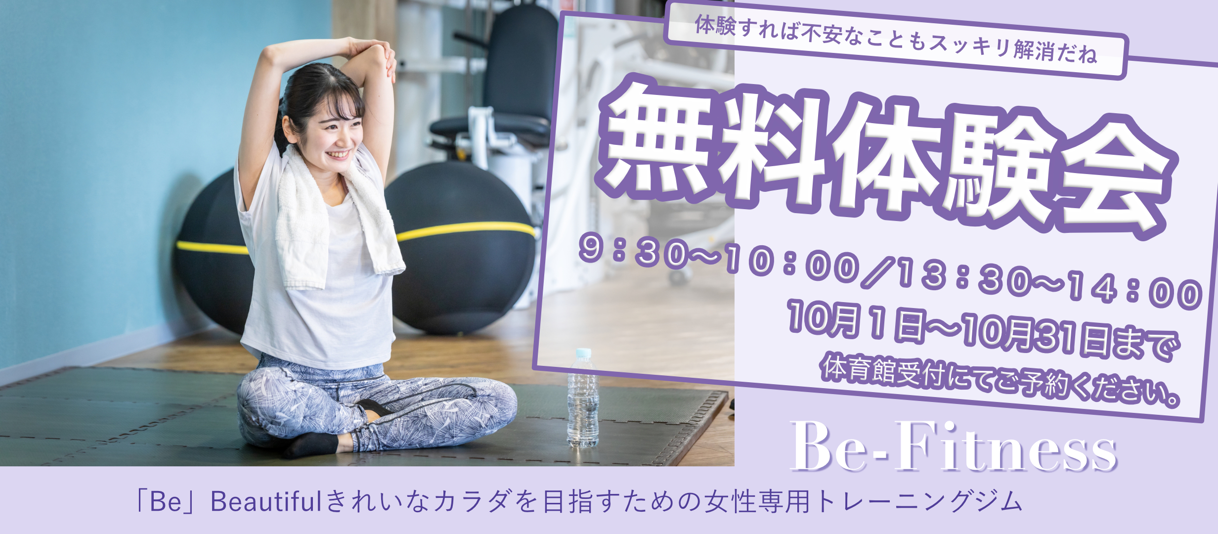 【先着15名様限定】運動が苦手でも大丈夫!30分の無料体験で「できる!」を実感。|女性専用ジムBe-Fitness|